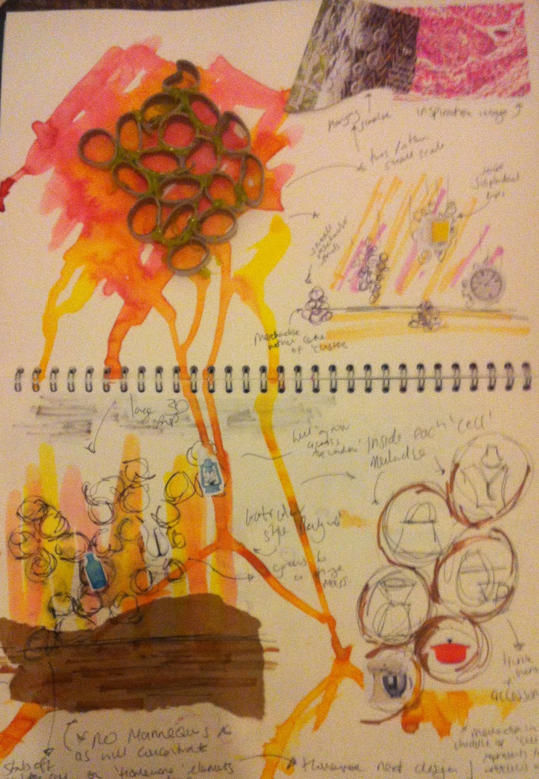| Initial concept sketch showing inspiration images, sample and sketches |